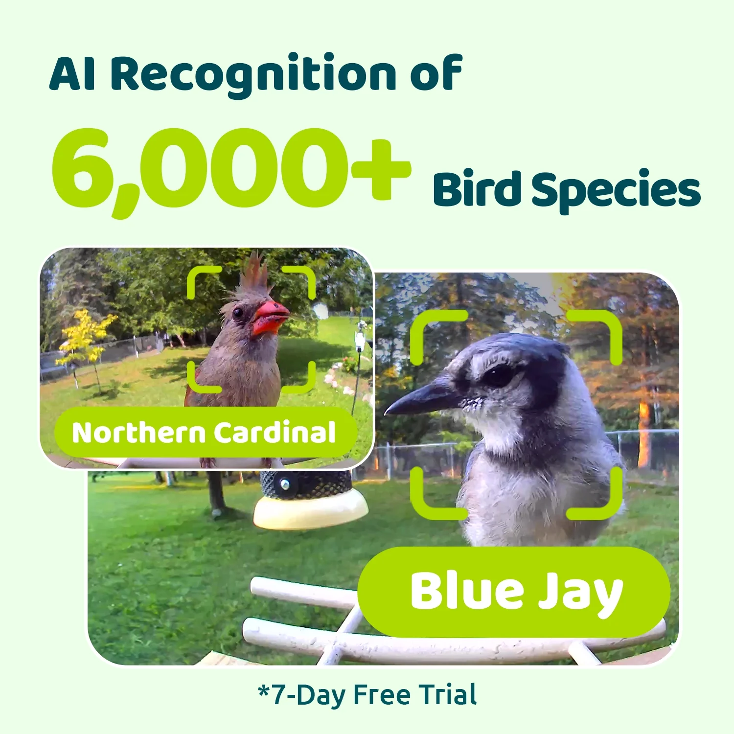Smart Bird Feeder with Camera, AI Identify 6000+ Species, Solar Powered,Eco-friendly Wooden, Ideal Gift, Cyan