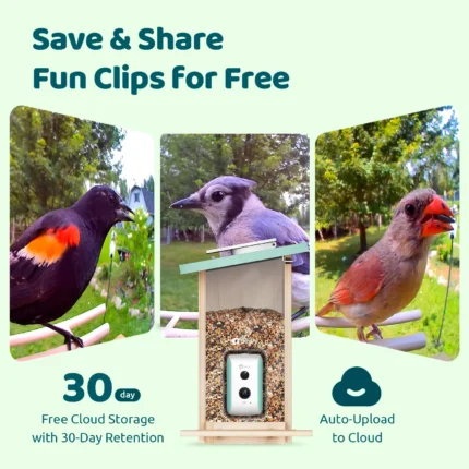Smart Bird Feeder with Camera, AI Identify 6000+ Species, Solar Powered,Eco-friendly Wooden, Ideal Gift, Cyan